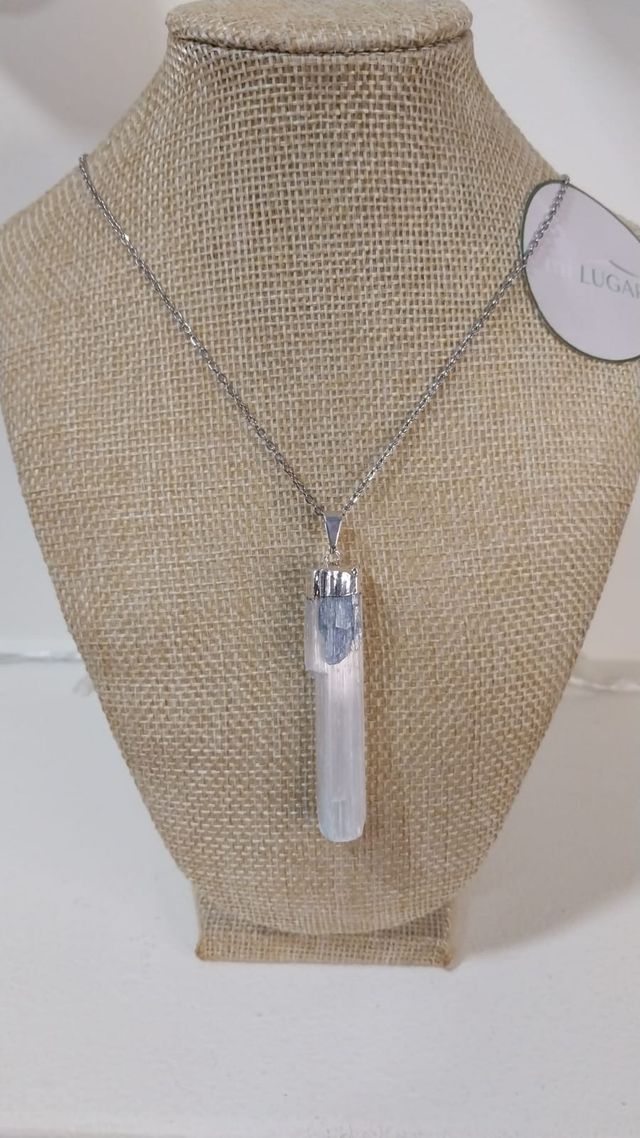 Dije pico de Selenita,con engarce y aplique amatista