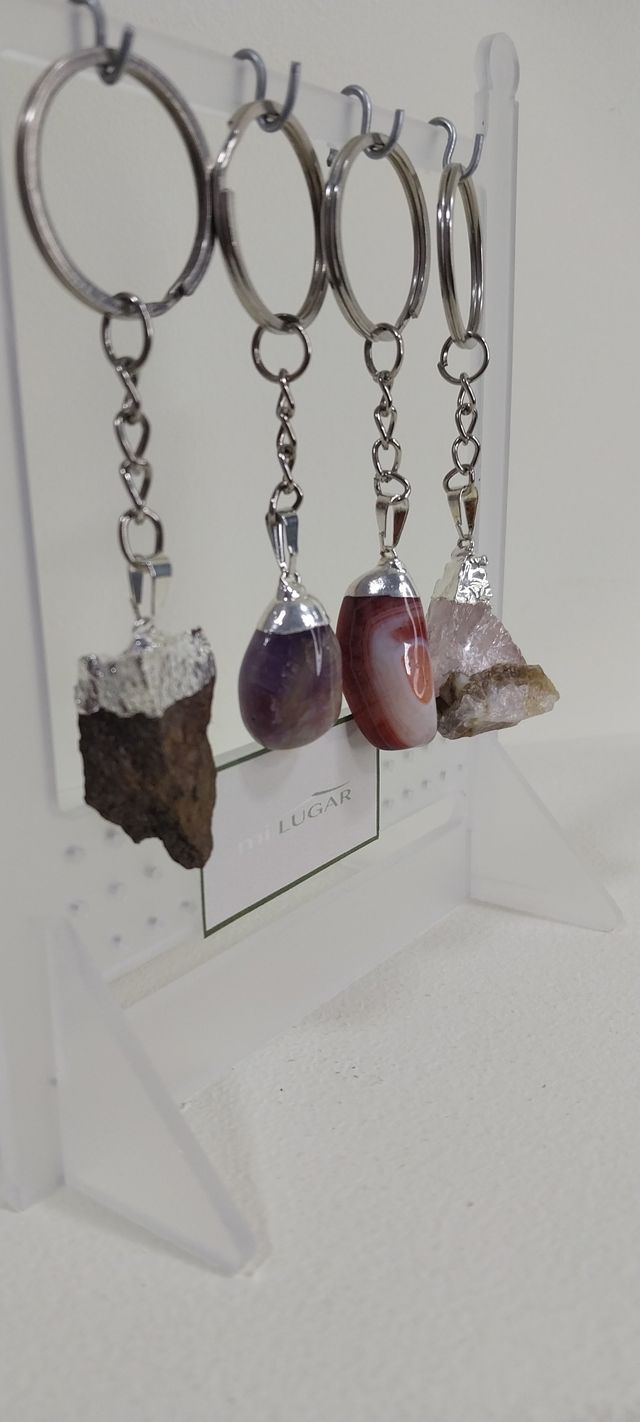 Llaveros diferentes piedras, en bruto y pulidas