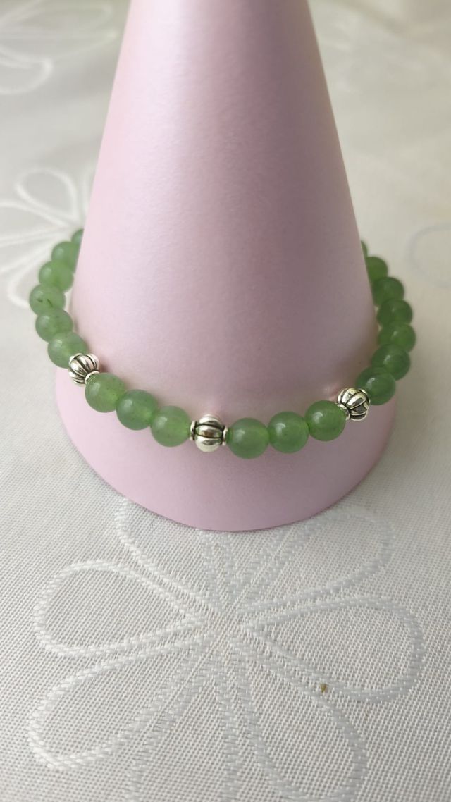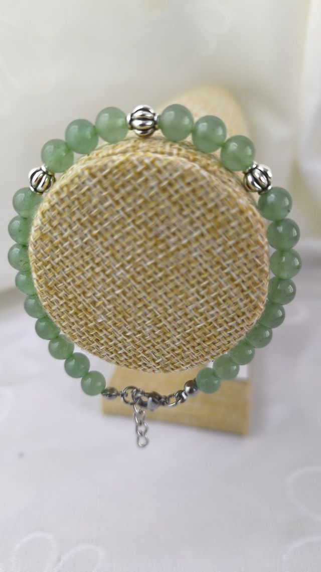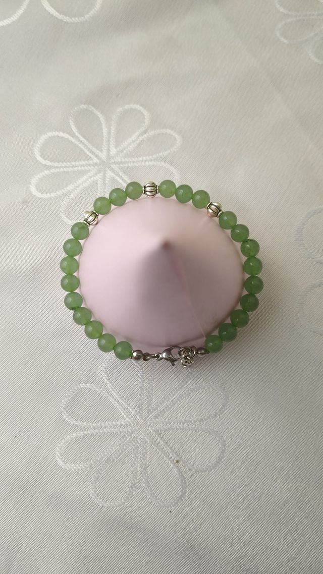 PULSERA EN PIEDRA NATURAL DE CUARZO VERDE ,DIJES,CIERRE Y TANZA